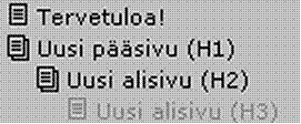 H2 otsikko on taas pääsivun alisivu ja H3 on H2:n jälkeen tuleva alisivu. H4 toimii normaalina otsikkona joten sitä tulee käyttää otsikointiin sivuille. Se ei siis luo uutta sivua, vaan toimii ainoastaan otsikkona!