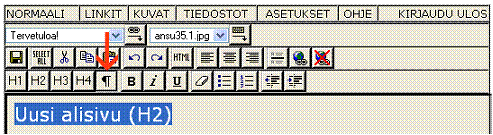 Otsikoinneilla luodaan samalla myös uudet sivut (H1-H3)