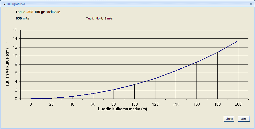 Ohjelmasta saa ruudulle ja sitä kautta myös monesti tulostettua erilaisia ”käppyröitä” ja taulukoita; kuten esimerkiksi nopeuden ja energian muutokset, tuulen vaikutus lentorataan, sekä eri luotien vertailua keskenään esimerkiksi lentoratojen suhteen. Ohjelman laskenta perustuu Pejsan-likiarvokaavoihin, joista voit lukea tarkemmin esimerkiksi osoitteessa: http://en.wikipedia.org/wiki/External_ballistics.